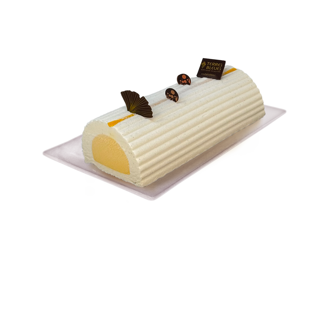 Voyagez aux quatre coins du monde avec cette bûche à la vanille de Madagascar et aux fruits exotiques : mangue d’Inde, fruit de la passion et banane d’Equateur, citron vert du Brésil, goyave d’Afrique du Sud et litchi de Thaïlande. Embarquez pour une évasion exquise en fin de repas!